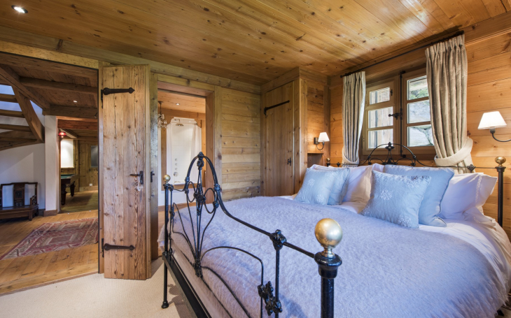 Всички стаи са красиво обзаведени, за да предложат комфорт и спокойствие на своите гости. Класически алпийски детайли, скъпи материи и изискани мебели създават изключителна атмосфера подходяща както за почивка, така и за забавления. На партерния етаж се намират 4 от спалните /две от тях с тераси/ - всичките със собствени бани. Главният апартамент е на последния етаж, със собствена баня с вана и две гардеробни. Големите френски прозорци водят към тераса обърната към вечната красота на алпийските върхове. Останалите 5 спални са в съседното шале Льо Ти, до което се стига през градината или чрез топла връзка на закрития гараж.